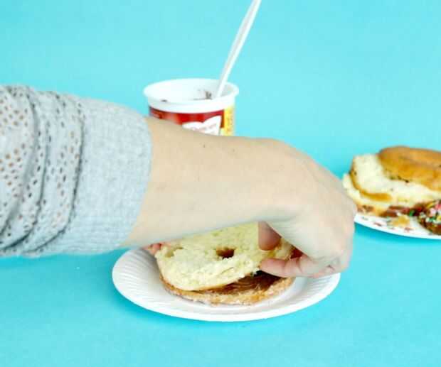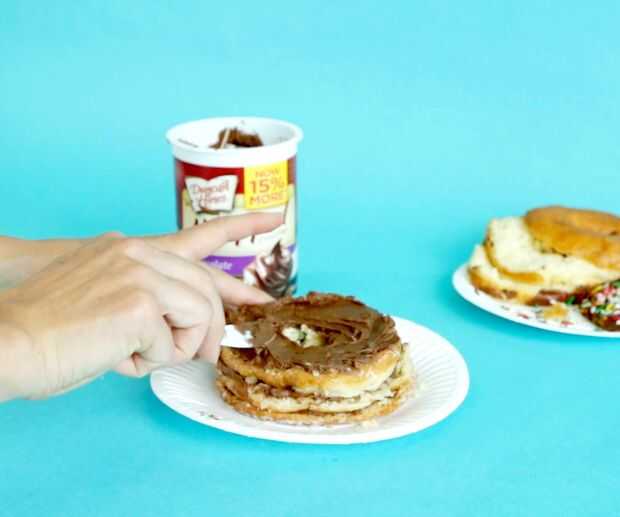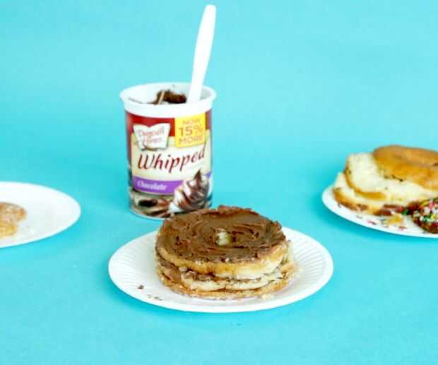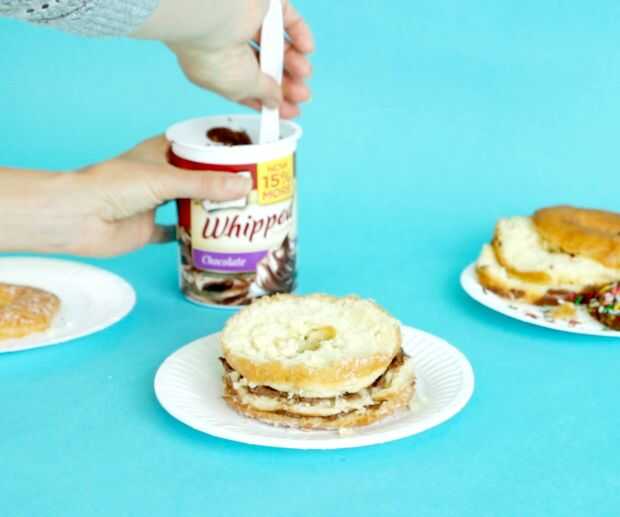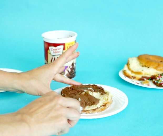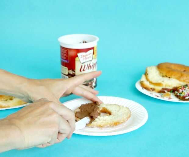 Nota: Usted no va a utilizar la rebanada superior redondeada de donut no helado. Lo fijó a un lado para un snack de medianoche.