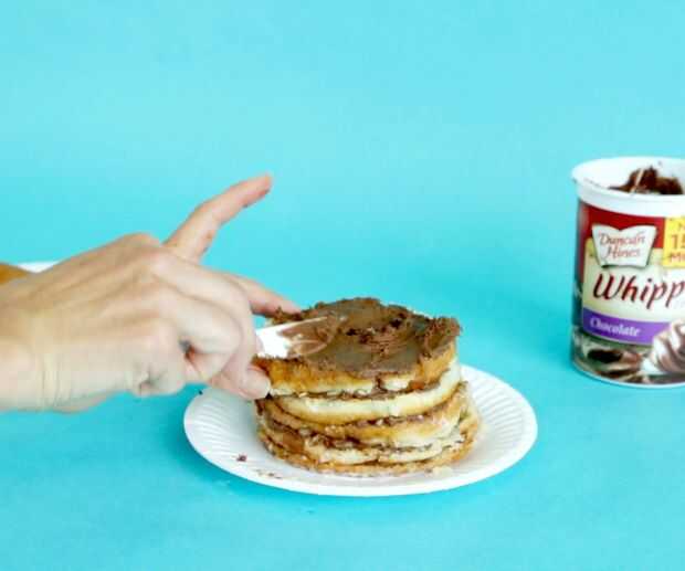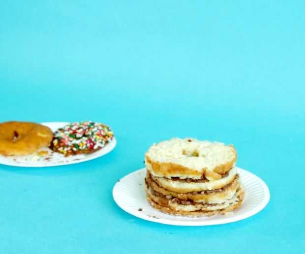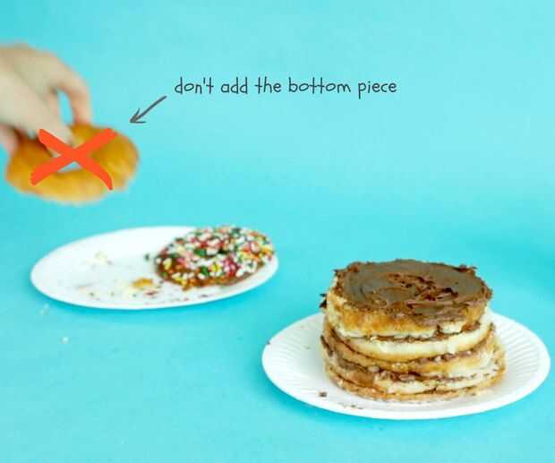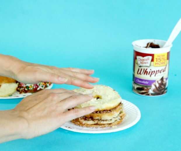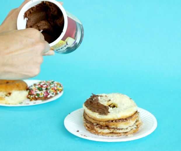 Seguir añadiendo capas usando el medianas dos rebanadas de la rosquilla helado.