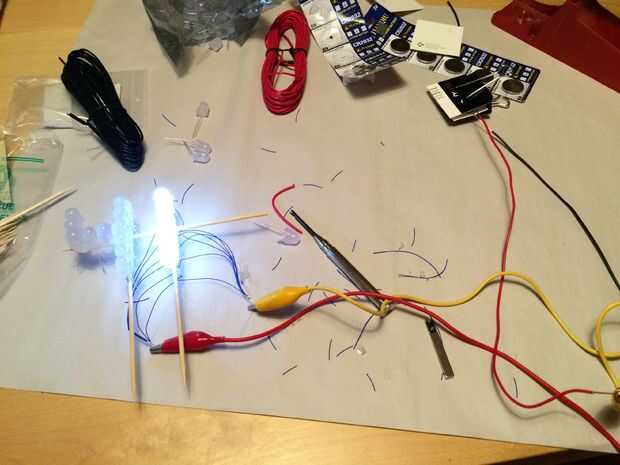Después de conectar los distintos segmentos de LED, me di cuenta de que había estado un poco descuidado en el seguimiento de la polaridad de los LEDs mientras era alambre de envoltura-que era fácil (aunque laborioso) corregir.