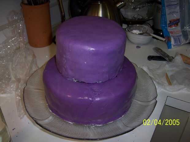 Poner algún betún en una bolsa de plástico con una punta si lo desea. Tubo escarcha alrededor de la base de ambos niveles para cubrir los bordes.