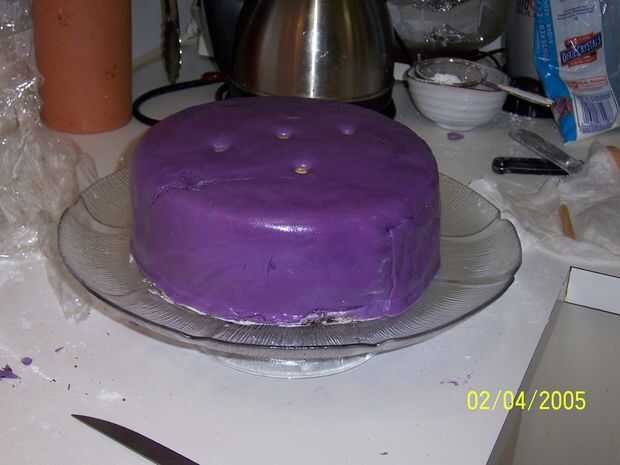 Personalizar si quieres. Puse a helar en una pequeña bolsa de plástico e hilo en la parte superior. También utilicé algunos fondant sobrante para rodar hacia fuera el "22".