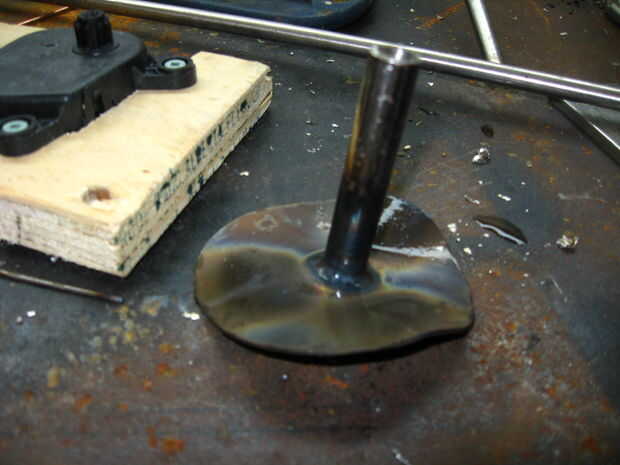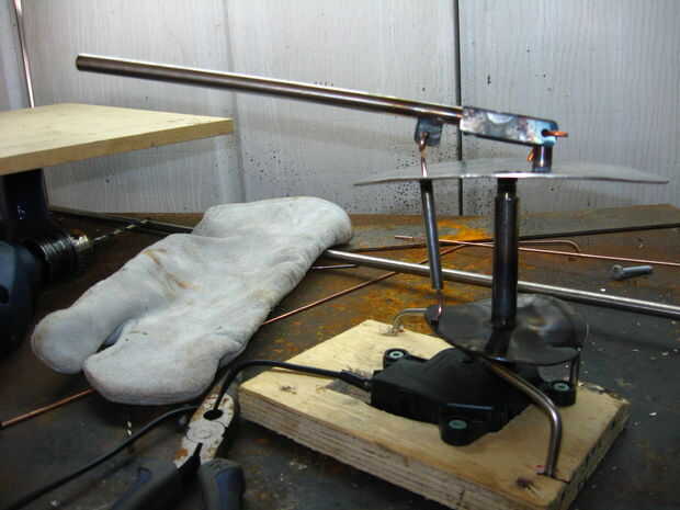 Para hacer el arma viajes arriba y abajo, decidí hacer una barra y sistema de leva. Me soldar un tubo de guía a la bandeja de la torreta y una "leva" de tipo de un disco de metal que calienta con un soplete y doblados al azar. Entonces esta fijado a un tubo que actuaría como un buje para la rotación de la cacerola de la torrecilla.