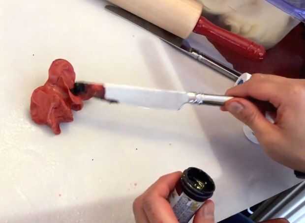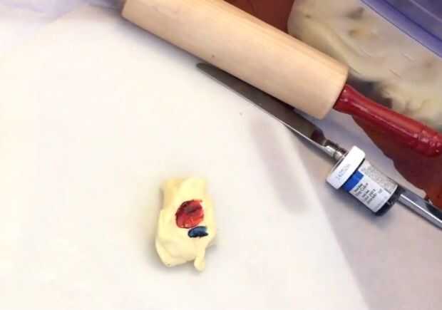 Paso 13: Amasar en rojo, azul y negro para colorear en el fondant para hacer las venas más pequeñas