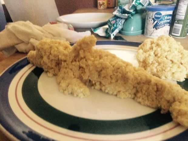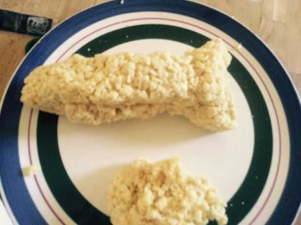 Abra su Rice Krispies y colocarlos en el plato y darles forma en un delfín. Recuerde, no los delfines son en forma de tubo, consiguen más delgados a medida que se acerca a la cola. Comience con el cuerpo, incluyendo la nariz. Añadir la cola. Exprima una cola y las aletas. Puede comerse cualquier extra Rice Krispies tienes *
