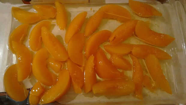 Abrir el frasco o puede y en la descarga. Sé justo?! No te molestes en drenaje su fruta en conserva - querrá el jugo allí.