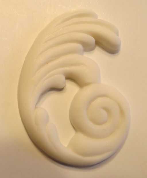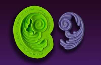 • Para el nivel superior, molde de seises por cada uno de los moldes de desplazamiento izquierda y derecha remolino usando una mezcla de pasta de goma y fondant o pasta de azúcar mezclada con el polvo tylose.