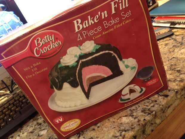 Mezclar todos los ingredientes y vierta a la cacerola. Este pastel le exigirá que cuecen al horno las mitades en dos momentos diferentes, a menos que tenga dos bandejas. Para esta torta necesitas un pan específico-el pan mejor Crocker. Este pan se utiliza normalmente para hacer el relleno en la tarta pero la usé para crear semicírculos.