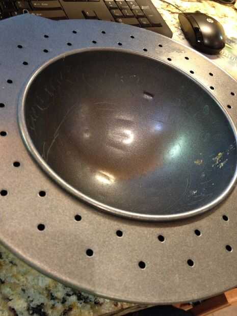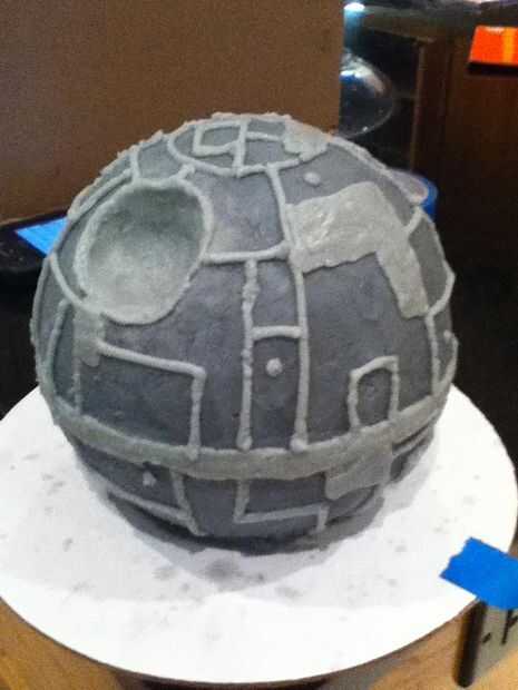 Una vez enfriado cortar en la pieza inferior de la torta un poco plana así que puede equilibrar. Coloque el otro medio círculo encima de la otra, luego gancho junto con el palo de brocheta.