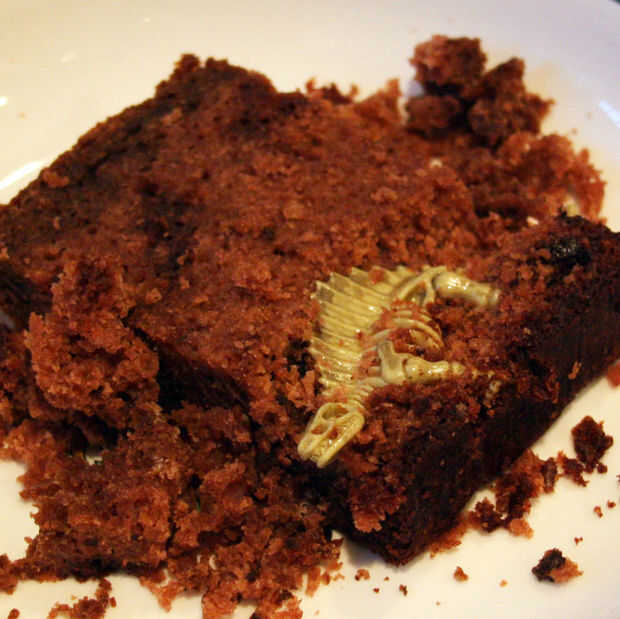 Descubrir dinosaurios enterrados bajo capas de delicioso chocolate con cada capa que denota una era prehistórica con cantos rodados trozo de galleta y chocolate, una experiencia de verdadero paleontólogo! Con su tenedor de cincel puede cavar a través de los 3 períodos prehistóricos principales encontrar olvidados amigos fosilizados, como el stegosaurus, triceratops y ceratosaurus.