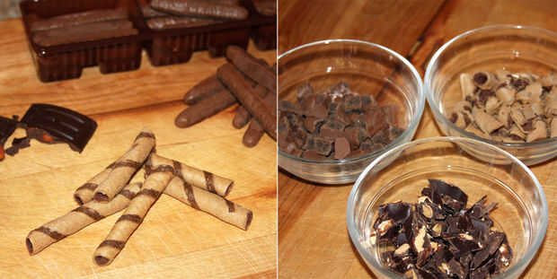 Puede utilizarse casi cualquier tipo de galleta o cookie, que le da diferentes texturas. Algunas alternativas podrían ser galletas (como Oreo y pirata), galletas de especialidad (como las galletas de jengibre melaza o arrurruz) o cualquier tipo de chocolate bar (las golosinas más dentro mejor!).