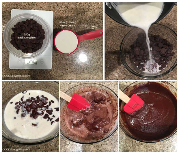 Para que el tamaño de un pastel son buenos con 125ml (1/2 taza) de crema/nata pesada funciona incluso una crema vegana y chips de chocolate negro 250g (aproximadamente 0,5 lb).