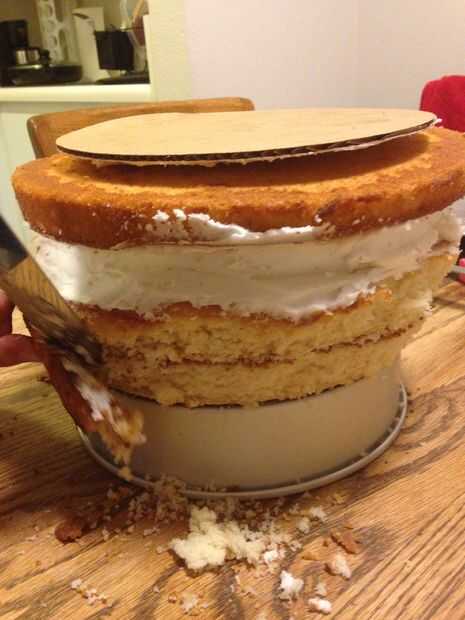 Bonita construcción de pastel estándar: utilice una receta delicioso glaseado para enlazar las capas, y tacos atascados en vertical si tu pastel es lo suficientemente alto para necesitarlo. Hicimos un corte después de apilar para conseguir un ángulo más suave para nuestro cuerpo de firebird. La forma de la cabeza era un poco más complicada, y el centro de masa sesgada dificultaba almacenar bien (terminamos usando las herramientas convenientes, es decir una taza de medir en la altura correcta).