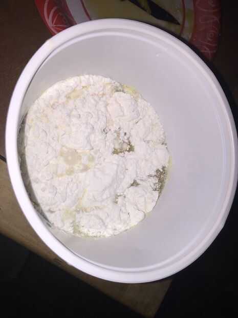 a continuación con su mezcla de pastel favorito, mezclar la masa de torta. Luego llene su naranja completa alrededor de la mitad. Recomiendo elegir algo que sea bueno con un toque de sabor a naranja. En este instructable elegimos pastel amarillo. También es importante saber que usted está haciendo esto mientras camping así que usando una mezcla de pastel que es fácil de mezclar mientras estás camping es una buena idea.