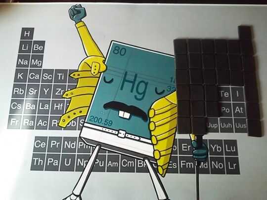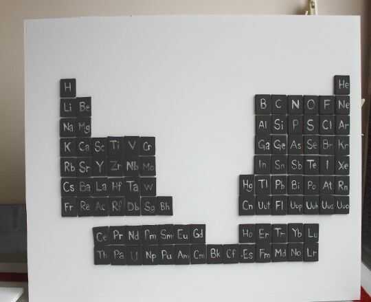Periyodik tablo ve figür üzerindeki pintorescos kalıp kullanmadan elle şekillendirildi.