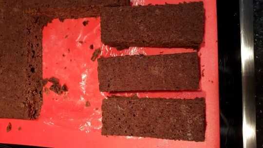 cortar las piezas de torta tamaño de la base y medida del corte de las barras a tu gusto.