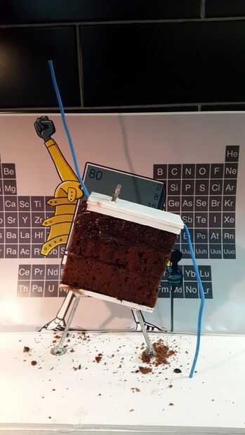 Una vez que se monta el puzzle de tarta, pastel todo era ganached y enfriar en la nevera.