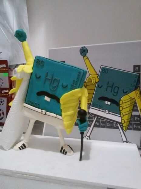 Freddie Mercury es todo comestible excepto la estructura y cartón entre las capas de pasteles.