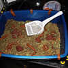 Ingredientes: Una nueva marca Panamericana de gatos y cucharas, 2 diferentes pastel de mezcla de caja (yo uso especias pastel y amarillo pastel), medio paquete de galletas Oreo, completamente triturado y pulverizado, grande tootsie roll, tazas de chocolate con leche. Hornear los pasteles según la dirección del paquete. Si son un poco en el lado seco, eso está bien. Añade al efecto de los gránulos. Dejan enfriar completamente. Coloque dos pasteles en la cacerola de la litera del gatito y desmenuzar tanto como puedas, cuanto más fino mejor. Añadir las galletas machacadas y mezclar. PLOP el pudín en diferentes áreas para obtener un efecto "diarhhea". Los rodillos del tootsie, cerca de 5 en un tiempo de 9 segundos en el microondas. Esto los hace flexibles. Darles forma en "personas" y montones de "caca". Usted puede colgarlos el borde también. Hacen todos los años para mi fiesta de Halloween!