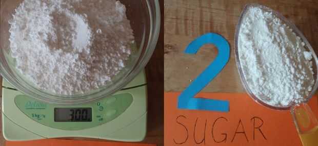300 gramos o 2 tazas de azúcar