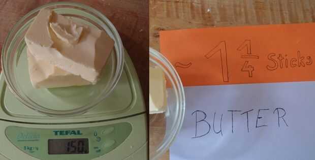150 gramos o 1 1/4 palo de mantequilla