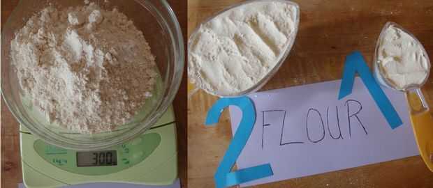 300 gramos o 2 y 1/4 tazas de harina