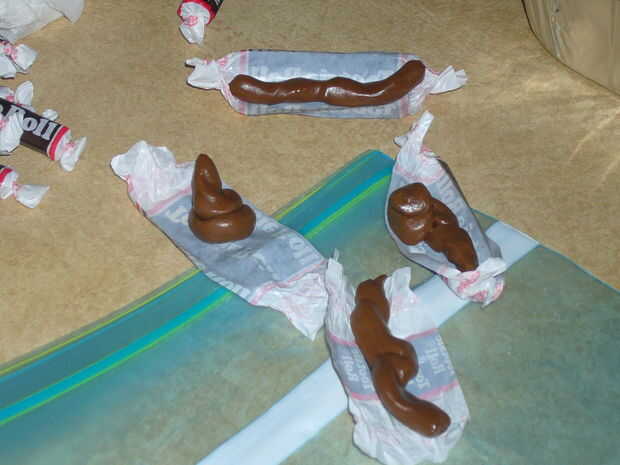 Desenvuelva sus tootsie rolls y microondas hasta suave/flexible (5 o menos segundos dependiendo de su potencia). Con su impresionante conocimiento de caca de gato, redondear las aristas afiladas y forman estas delicias encantador. Usted necesitará por lo menos 6.
