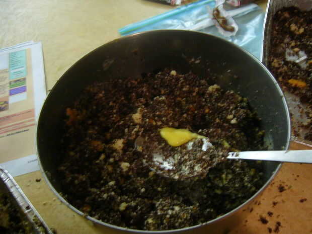 Ahora, vierta 1/2 del resto de la mezcla en el tazón de pastel y mezclar bien.