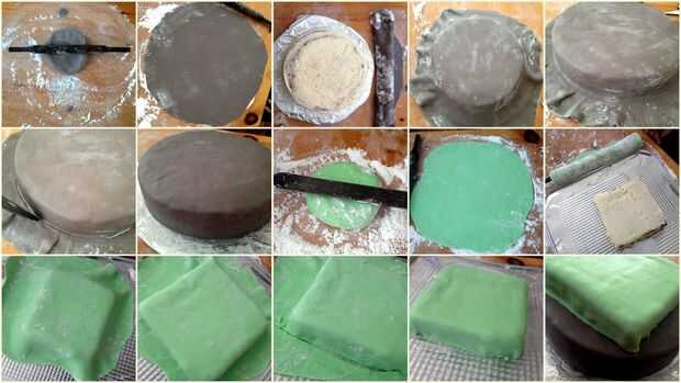 6. recortar el fondant extra usando el cuchillo. (se aferra abrigo para evitar sequedad)