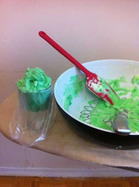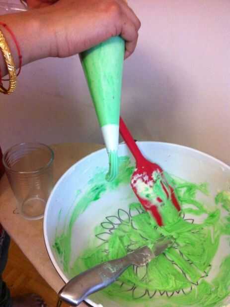 3. utilizar la mantequilla sobrante helar al decorado de los bordes de la torta. (color de alimento verde)