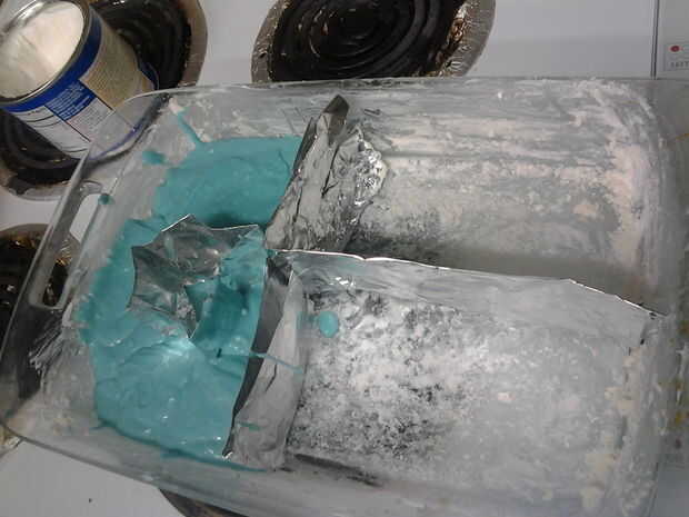 3 º se frustraron mis planes: usando la hoja haga una improvisación en forma pan para poder hacer la cresta o la bandera todo lo que es más fácil, después de verter la mezcla retirar la lámina.