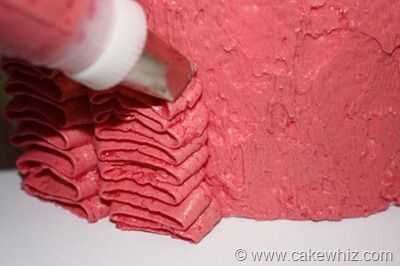 Continúe haciendo esto hasta que los lados de la torta están cubiertos totalmente en volantes.