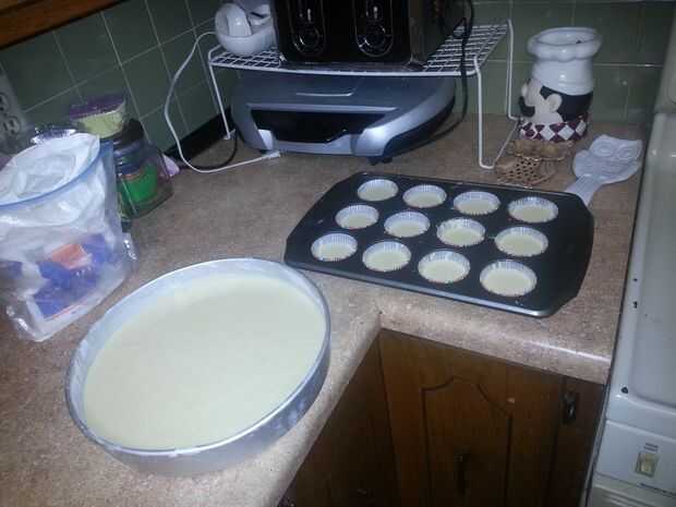 Hornear pasteles siguiendo las instrucciones. Hice dos torta de la capa así que tuve que usar el 12" redondo pan dos veces. Cocinar sus magdalenas siguiendo las instrucciones en la caja.