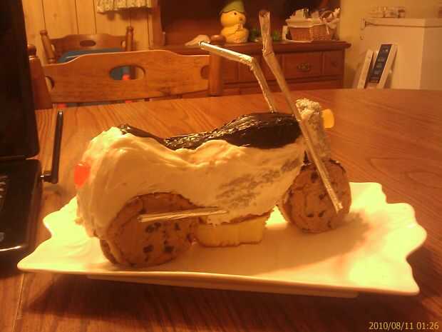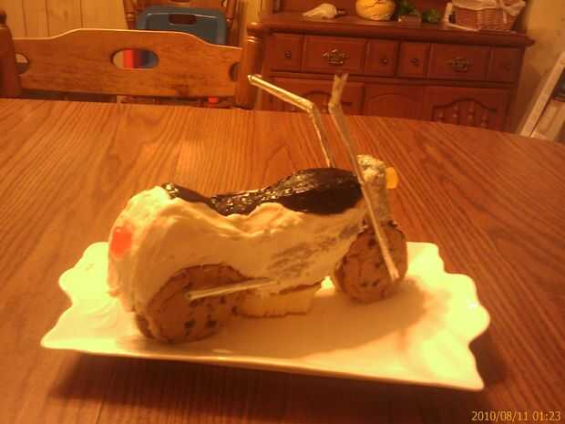 Está tallada de tienda comprar bizcocho, gumdrops de luces, tienda compré galletas y pajas de beber para barras de la manija. Cubrí las pajillas en aluminio para darles ese aspecto de cromo.