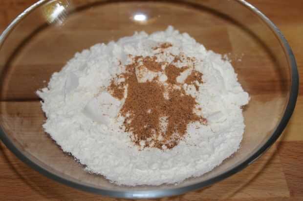 Tamice la harina, añadir la sal y la nuez moscada juntos y mezclar bien.