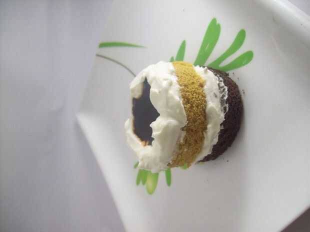 6. ahora poner la segunda capa con la crema y agregar el jarabe de chocolate o chocolate derretido en el centro.