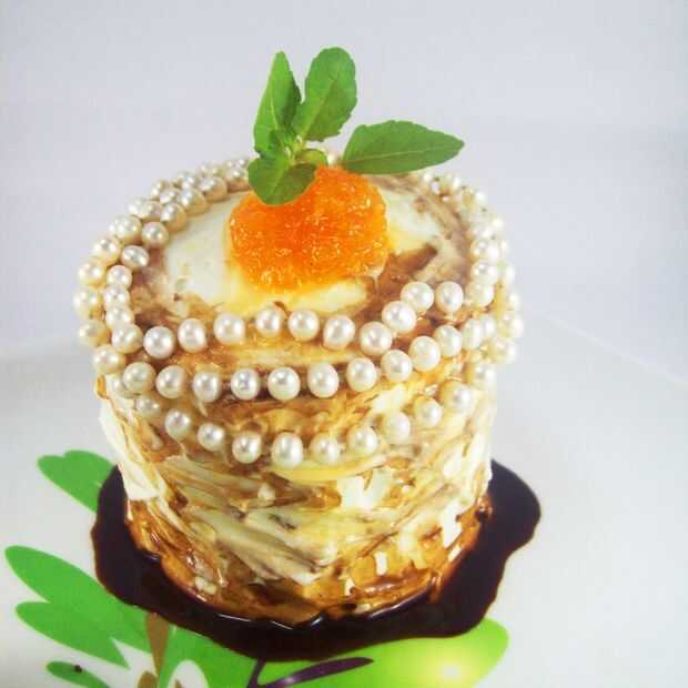 4. Añadir 1 tbps naranja jam en el centro y sobre ella hojas de albahaca para decorar.