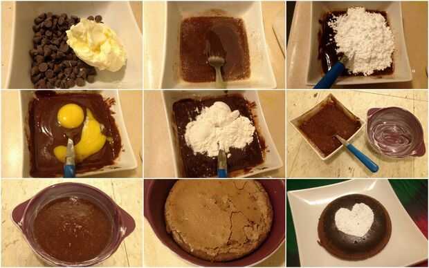 2. tomar un recipiente de microondas seguro, añadir mantequilla y choco chip. Microondas durante 1 minuto.