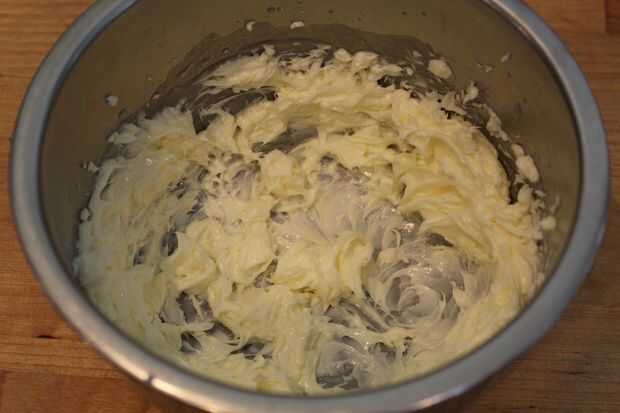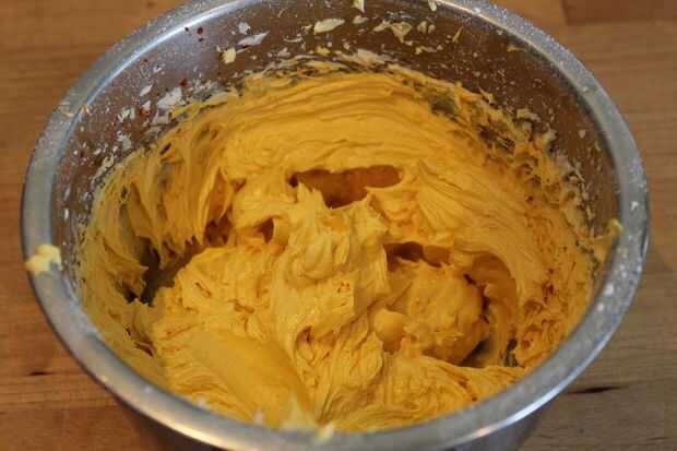 Batir la mantequilla en un tazón mediano. Luego añadir azúcar y batir hasta combinar. Agregar jugo de limón y batir otra vez. Añadir el colorante hasta que el helar es amarillo brillante.