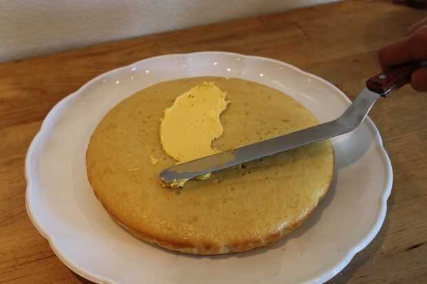 Opcionalmente, para cubierta más suave, helar metal espátula en agua muy caliente de la inmersión. Sacar y secar y suavizar el glaseado de crema de mantequilla con ella.