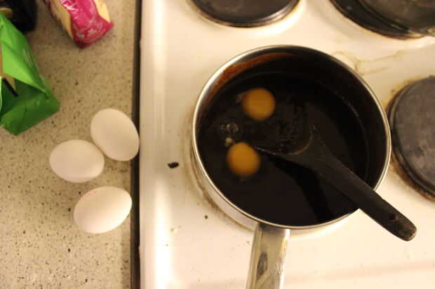 * Añadir los huevos a la mezcla con cuidado (utilizar un bate/tenedor para romper los huevos)