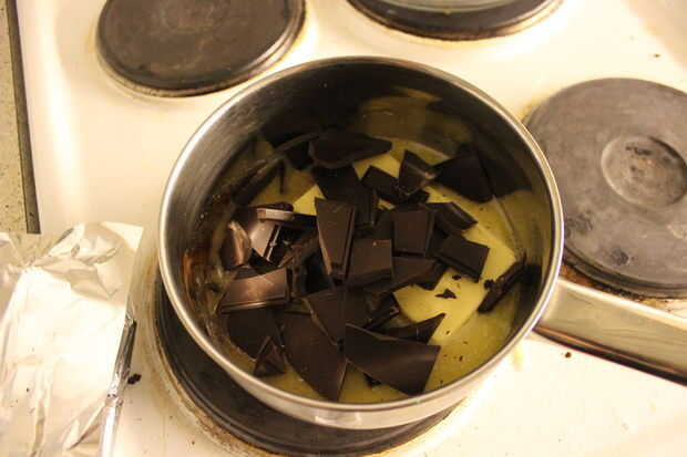 * Hornear en el horno, 200 grados centígrados, durante 20-30 minutos - dejar un poco "crudo" en el medio para sentirse perfecta torta de lodo pegajoso