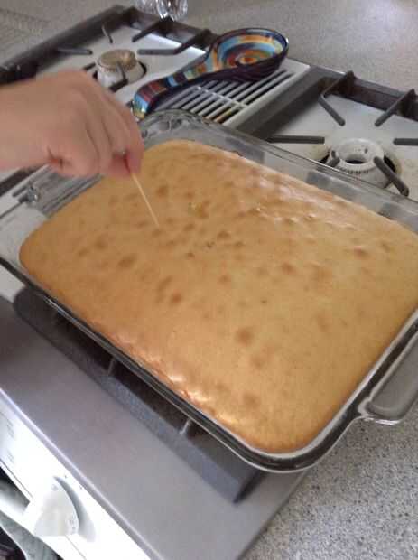 Comprobar si el pastel está hecho. El palillo debe salir limpio.