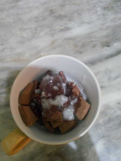 Usé un platillo de leche porque desde mi experiencia de hacer el pastel de chocolate, uno necesita una taza o jarro con enorme base. y la altura... por lo tanto platillo a mi me funciono :)