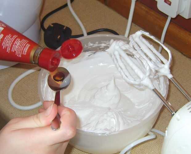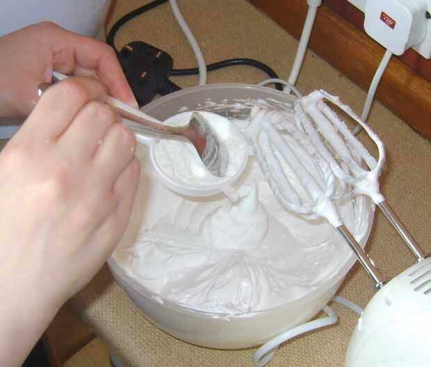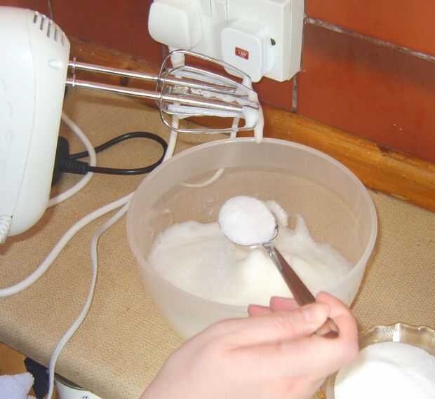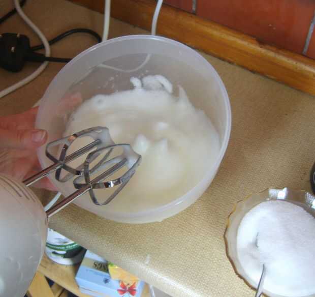 que hice en un recipiente de plástico, pero es aconsejable usar uno metálico. Por lo tanto, poner las claras de huevo en un cuenco y empezar a mezclar con una batidora eléctrica hasta que se convierte como una espuma blanca y comienza el desarrollo de selecciones. Después comienza desarrollo de selecciones, comenzar a añadir una cuchara de azúcar en un momento. Mezcla después de poner cada cucharada de azúcar, así que azúcar logrará disolver correctamente. La mejor manera de comprobar si el azúcar completamente disuelto es frotarla entre a los dedos a ver si hay cualquier azúcar cristales todavía en él. Si usted siente cristales de azúcar necesita mezclar más. Después de que se disuelva todo el azúcar, puede añade esencia de vainilla y mezcla otra vez. Al final cernir la flor de maíz (almidón) en la parte superior y añadir el vinagre y doblarlo! La mezcla se hace!