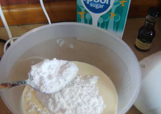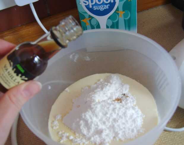 Verter 400g de nata en un bol, añadir 5-6 cuchara de glaseado de azúcar y una media cucharita de esencia de vainilla (puede poner una cuchara de un té de vainilla si te gusta pero no mucho más que iré amargo). Mezclar todo esto con una batidora eléctrica hasta que la mezcla de ser pensar y esponjoso! Hecho! Toma esta crema y llenan la mitad de los merengues!