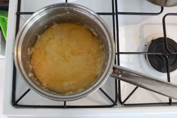 1. Combinar 1 taza de leche, un poco de agua y 10 cucharadas de sémola para hacer gachas de avena. La papilla debe tener una consistencia bastante gelatinosa.