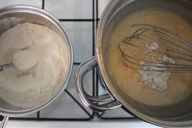 1. Combinar 1 1/2 bicarbonato con 3c AP de la harina y añadir a la natilla por aspersión, mezcla y repetición.