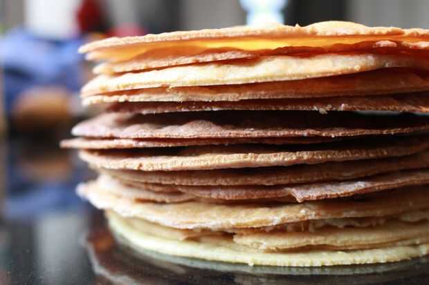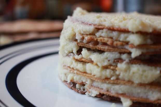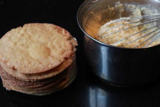 OK, ya tienes una pila de oblea delgada Galletas/panqueques y su crema debe refrigerarse.