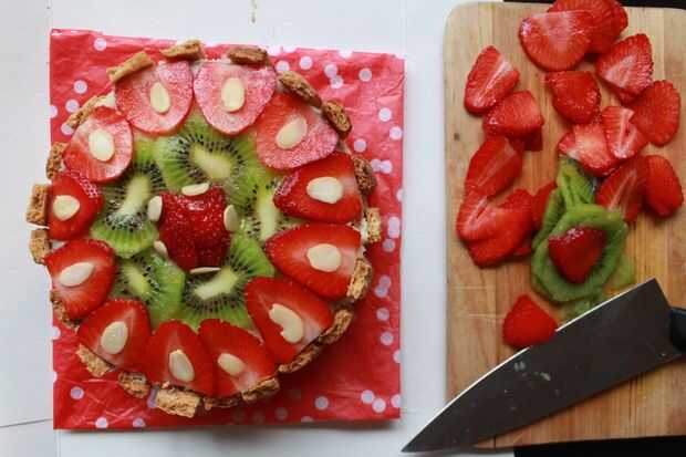 2. Decora tu pastel como hace parece agradable. Me enseñaron a hacerlo con fresas, kiwi y otras frutas frescas o frutos en el verano y con frutos secos y frutos secos en el invierno pero hacerlo como quieras.