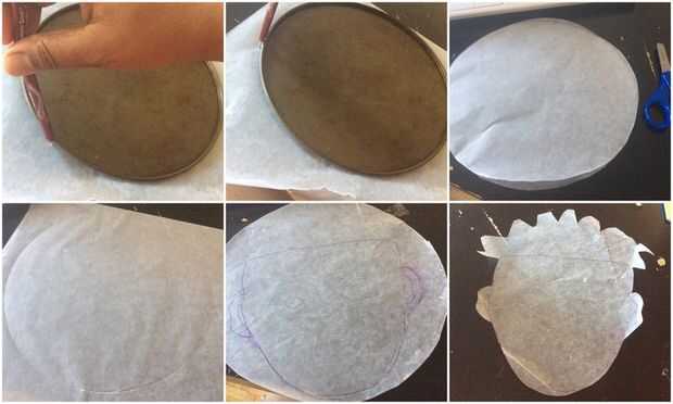 4. Si tienes una foto en su computadora portátil, agrandar para ser tan grande como la cara que quieras sobre el pastel, luego coloque el papel encerado encima de la pantalla y trazar la cara en el papel de cera. Cortar y mantener a un lado.